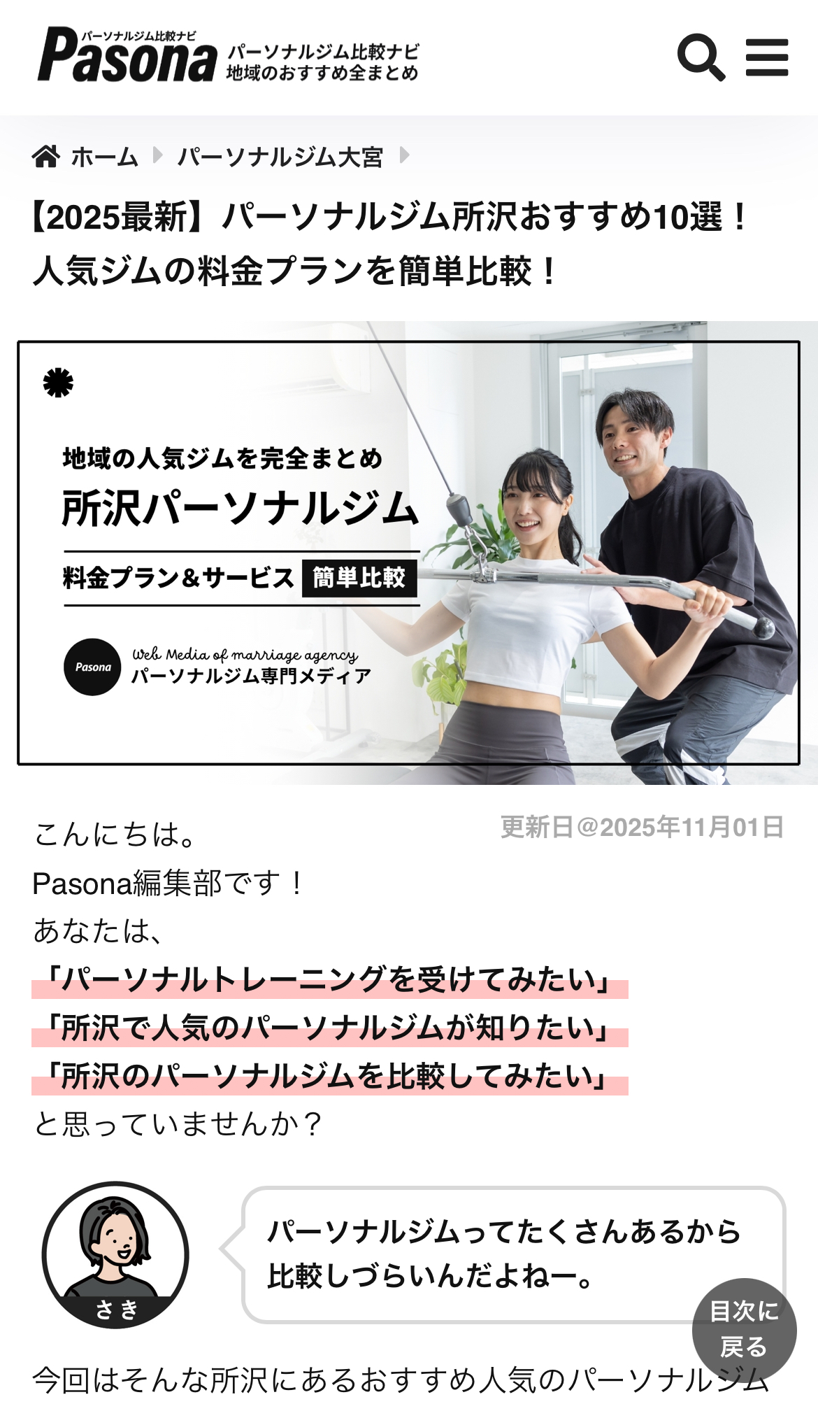 未分類2025年11月5日パーソナルジム比較ナビPasonaにて「パーソナルジム 所沢」おすすめジムに選ばれました!